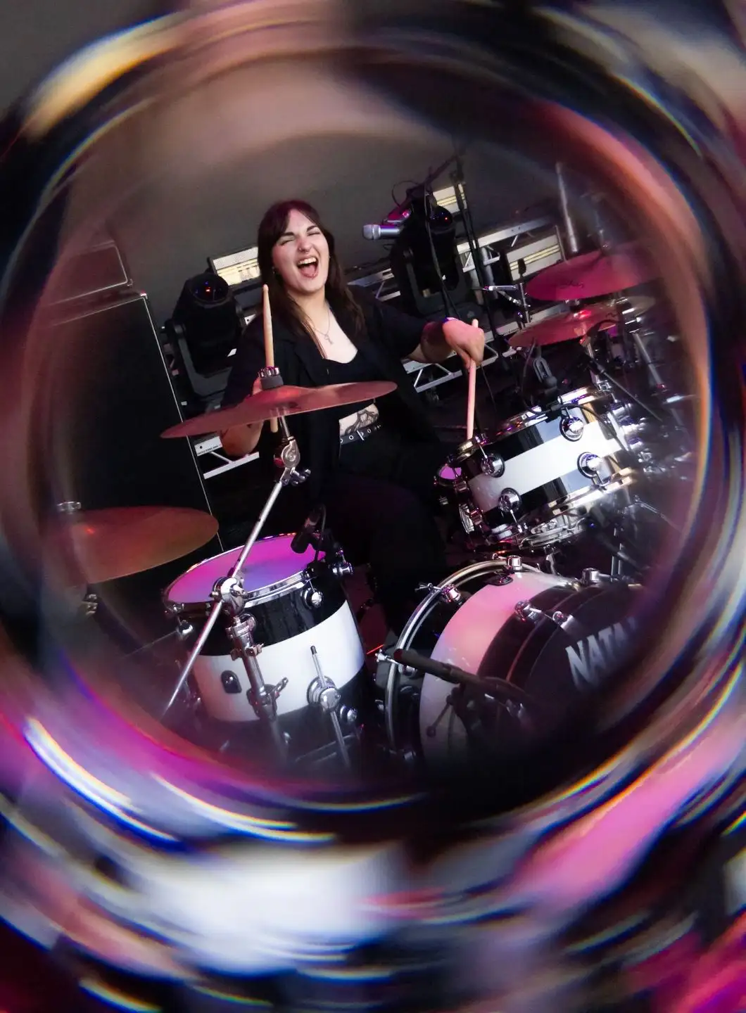 Alannagh Doherty is the powerhouse behind CHERYM’s exhilarating backbeats and Venus Grrrls’ eclectic flow. Born and raised in Derry, Ireland, Alannagh spent her time in the punk scene which was heavily influenced by the political climate in her hometown. Although originally a guitarist, Alannagh picked up drums at the age of 14 joining various punk and metal bands which have led her to where she is today. Alannagh has contributed to CHERYM’s success since 2019, supporting acts such as Snow Patrol, Enter Shikari, Sleeping with Sirens and Nova Twins and played countless festivals on an international scale. She joined the Venus Grrrls coven in 2025, giving the band a new punch in their rhythm. Taking inspiration from drummers such as II (Sleep Token), Mike Portnoy (Dream Theater) and Matt Garstka (Animals as Leaders), Alannagh has developed her signature sound combining feel, power and technicality from her punk and metal influences.