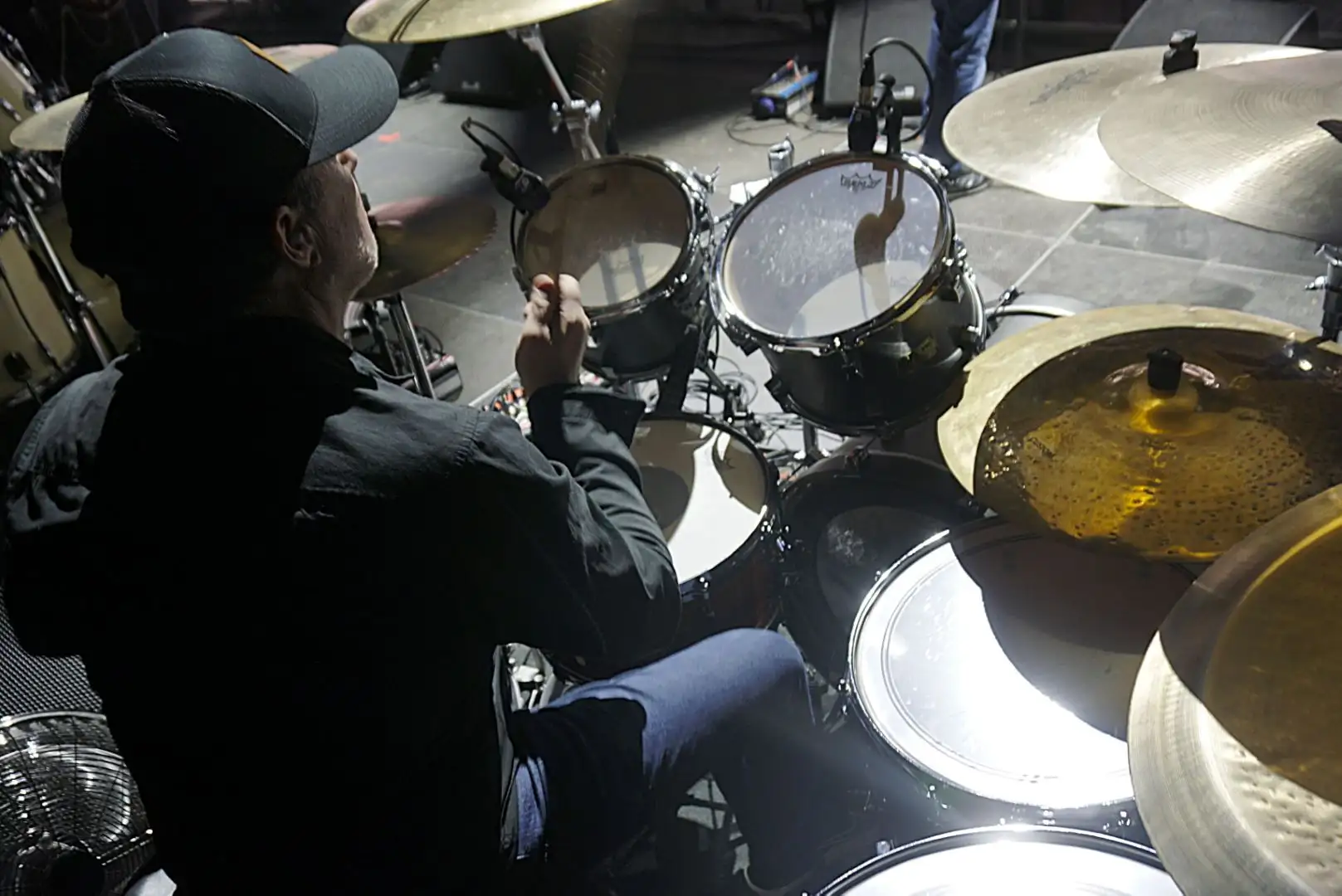 A couple of years ago, I played a friend’s kit live which had Ambassador Clears on the toms, the physical feedback felt amazing, so that has become my current live setup. For both floor toms I use Powerstroke P3’s. I love the sound control, sustain control and the tune-ability is really great, especially rushing at festivals etc. Since I switched to P3’s, I rarely need to use gels, but now and again if there’s no time/silence to tune 100%, Crown Control Gels are a lifesaver! For my bass drum I use an Ambassador SMT Clear which gives me a deep controlled bottom end, allowing me to drop my tuning, yet gain the perfect attack from the added Remo Falam Slam patch. On my snare, I tune it quite high and play rim shot. I use an Ambassador Controlled Sound, which sounds and feels great, and keeps any ring from my high tuning high in check. For me, Remo have always been consistent, reliable and sound amazing in both the studio and on the live stage!" -Darragh Butler